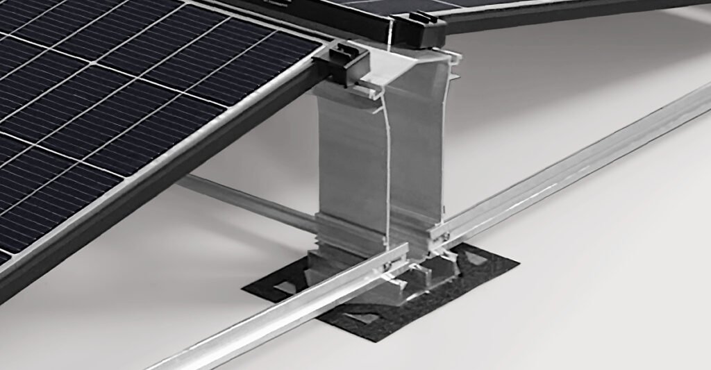 Ein wesentlicher Fokus der Weiterentwicklung liegt auf der weiteren Reduktion von Montagezeit und -kosten. Das neue, direkt in die Stützen integrierbare Kabelmanagement ermöglicht eine saubere Kabelführung per Clip-System ohne zusätzliches Werkzeug. Ebenfalls neu ist die werkzeuglose Optimizer-Klammer: Sie ersetzt die langwierige Kleinteilmontage und eliminiert das Risiko von schädlichen Bohrspänen auf der Dachhaut, da sie einfach an die Modul-Stützen geklemmt wird.